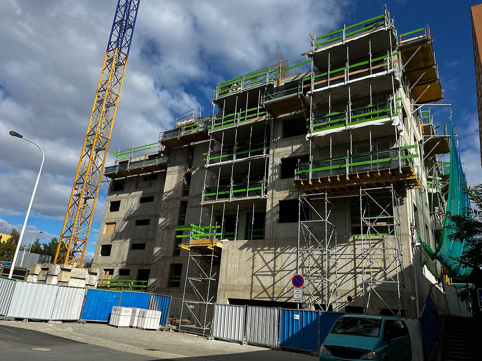 Na plné obrátky jede výstavby žlb. konstrukce na projektu nového bytového domu v lokalitě Prahy 8, BD Mazurská.